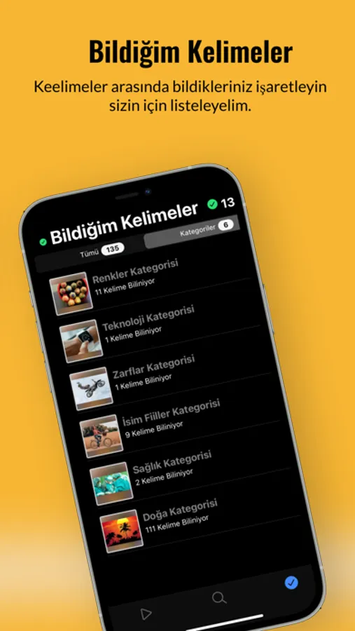 - “Kelime Oynat”, oluşturduğunuz herhangi bir kategorideki listeyi kelime çalar özelliği sayesinde, bir müzik çalar gibi dilediğiniz yerde dinleyebilirsiniz. Her kelime ikilisini belirli tekrarda dinlediğinizde, o kelimeler hafızanıza kazınacaktır.