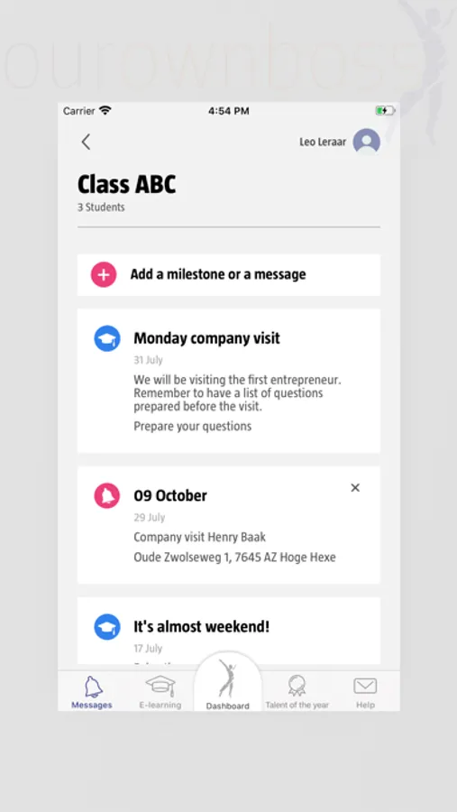 • Creates an overview within the BeYourOwnBoss Educational Program per class
