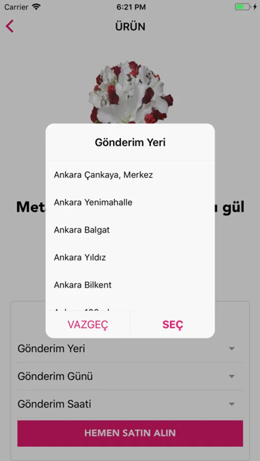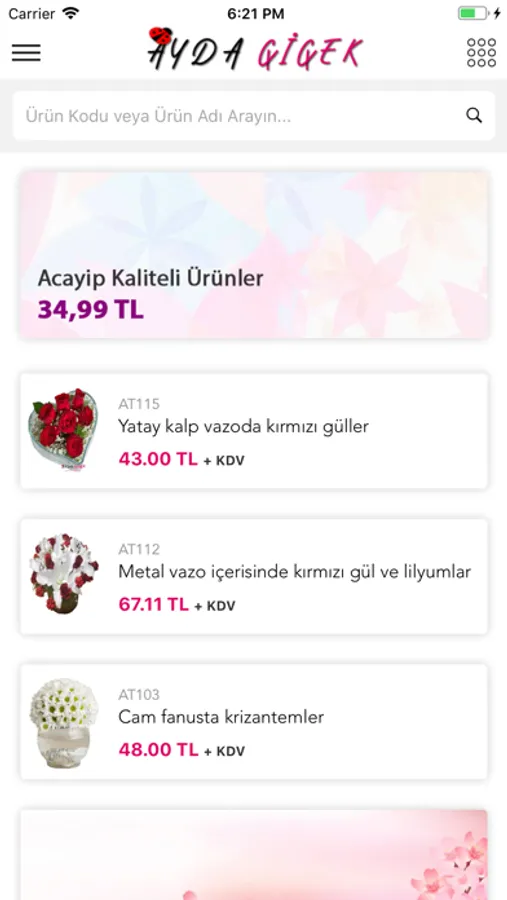 Ayda Çiçek yıllardır Ankara'da kaliteden ödün vermeden hizmet sunmaktadır. Sonsuz kategorisiyle sevgilinize, annenize, arkadaşlarınıza, akrabalarınıza istediğiniz kadar çiçek ve hediyelik eşya gönderebilirsiniz.
