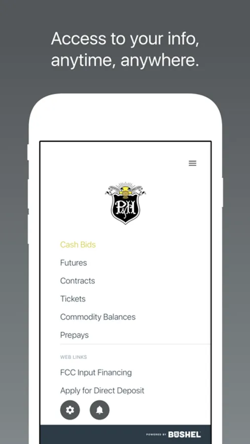 The Parrish & Heimbecker app is free, secure, and developed by the industry-leading Bushel platform.