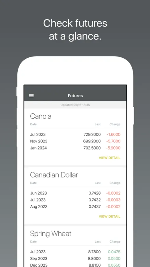 Futures: See Grains, Feed, Livestock, and Ethanol futures listed in order of your preference