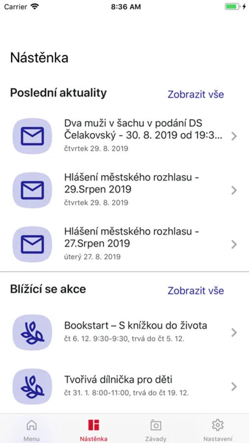 • popis a kontaktní údaje městského úřadu (vedení města, jednotlivé odbory a další organizace),