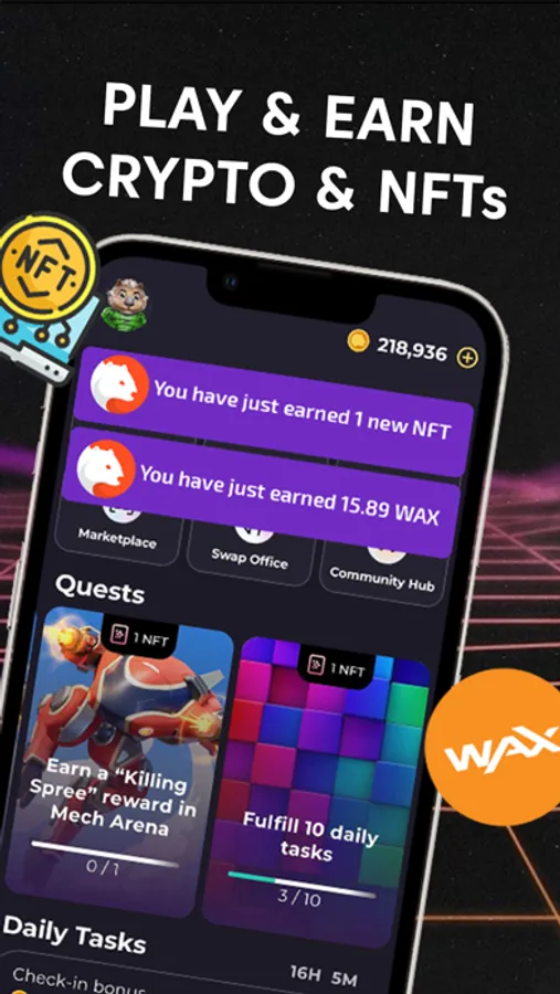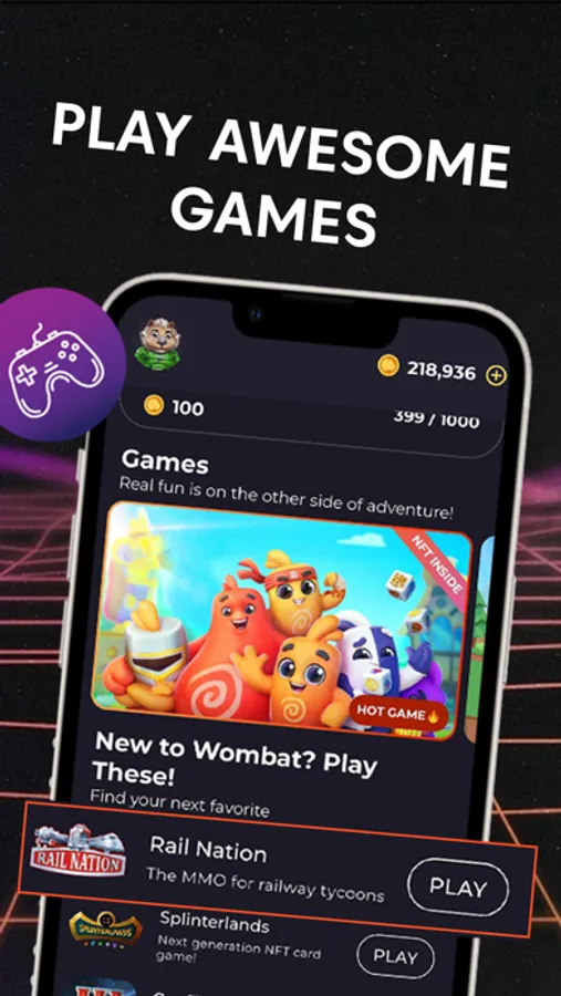 Join the gaming revolution and play together with millions of others across the globe. Build your legacy as a gamer with amazing NFTs you get by playing. Collect, trade or just share them with your friends — own your experience, your creations, your achievements. Wombat is the only App you need for all games & NFTs:
