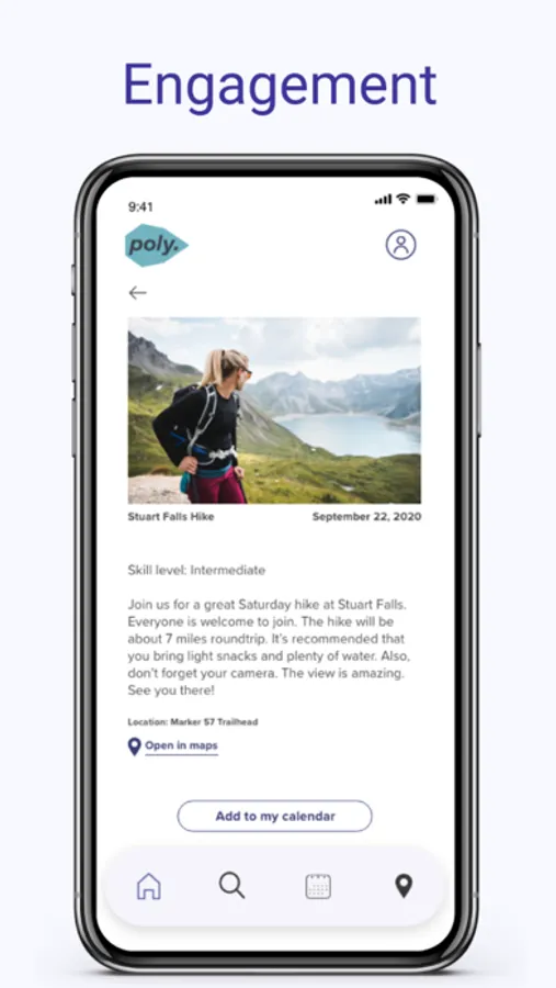 Poly is a mobile app that consolidates an organization's activities and events all onto one platform. Individuals can find, create, and explore.
