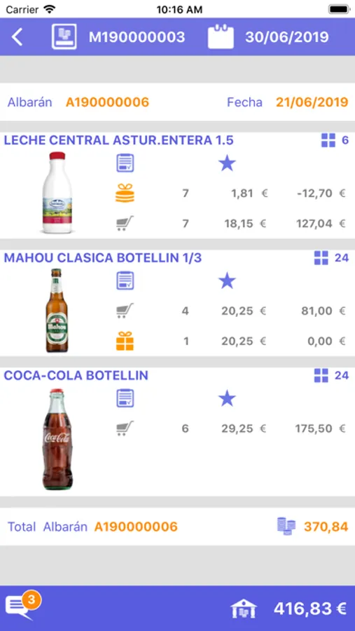 * Consulta de deudas pendientes por factura con detalle de la mercancía servida