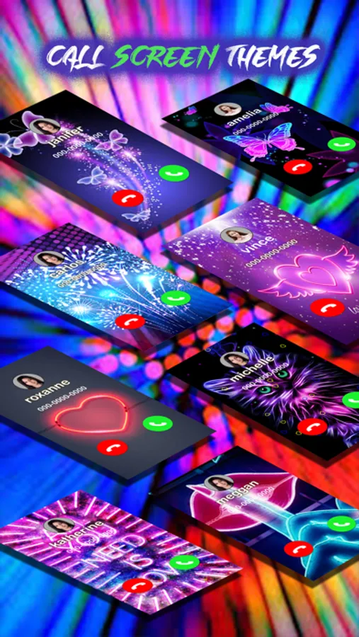 Customize your call screen with color call screen theme. Experience the Ultimate phone personalization using color call screens for all incoming calls. Color rings transforms your phone in an amazing phone. Call theme app is the foremost call screen customization application which bring the stunning collection of call screen themes. Just choose and color your call for all incoming calls with color call screen theme. Stylish color caller screen converts your simple call in to color call through amazing call screen phone themes.