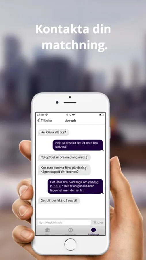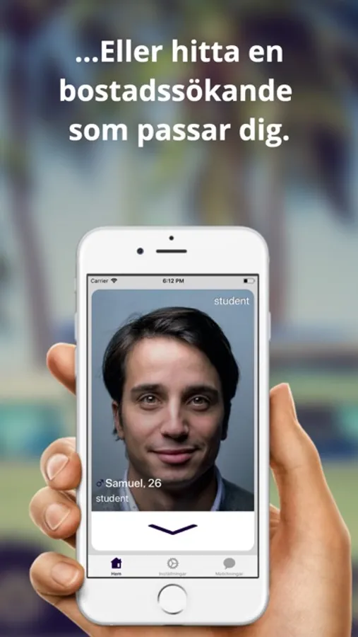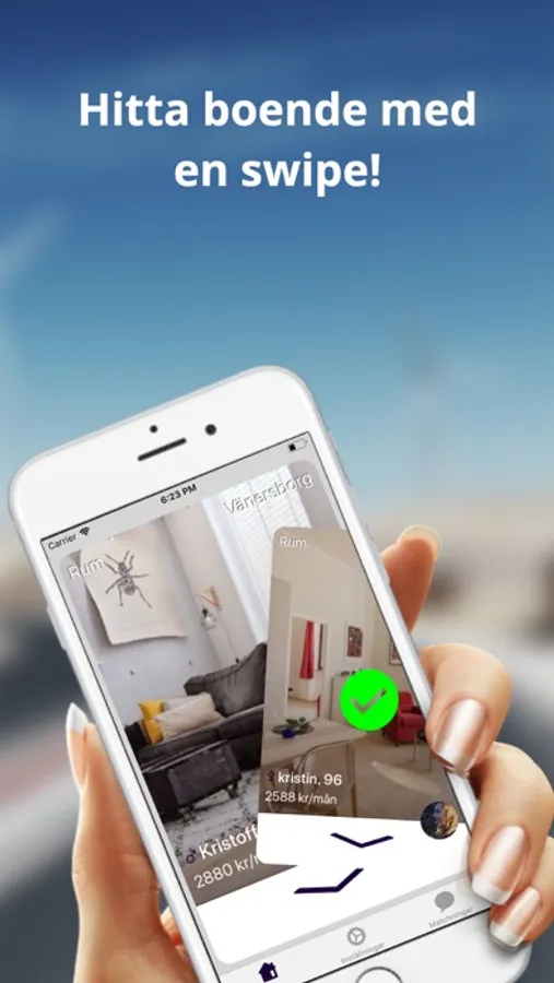 Hyr eller hyr ut ditt boende och skapa din annons i vår app. När annonsen ligger uppe är det bara att swipa på allt av intresse. Som uthyrare swipar du på hyressökande och tvärt om.