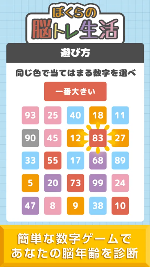 簡単操作のパズルゲームであなたの脳年齢を診断します。