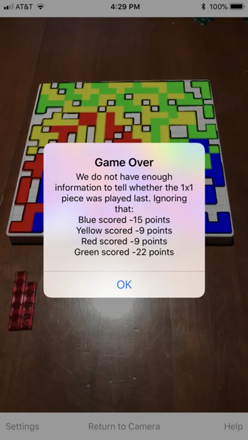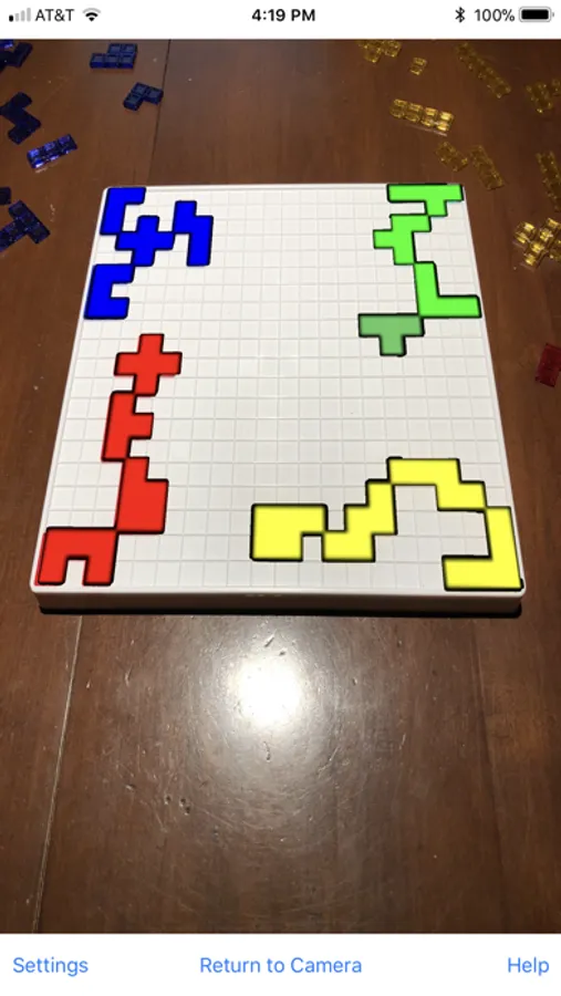 This is an artificial intelligence app for use with the board game Blokus(r). By analyzing a picture you take of a Blokus(r) board, the app determines the layout of the board and tells you what move it would like to make. This app can also be used with pictures in your photo library, and there are some sample images available on the FourthPlayer website which can be downloaded and used with the app.