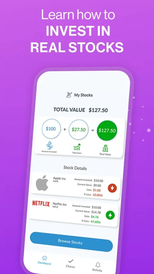 Your kids will get to spend their own money (you’ll see every transaction in the feed).