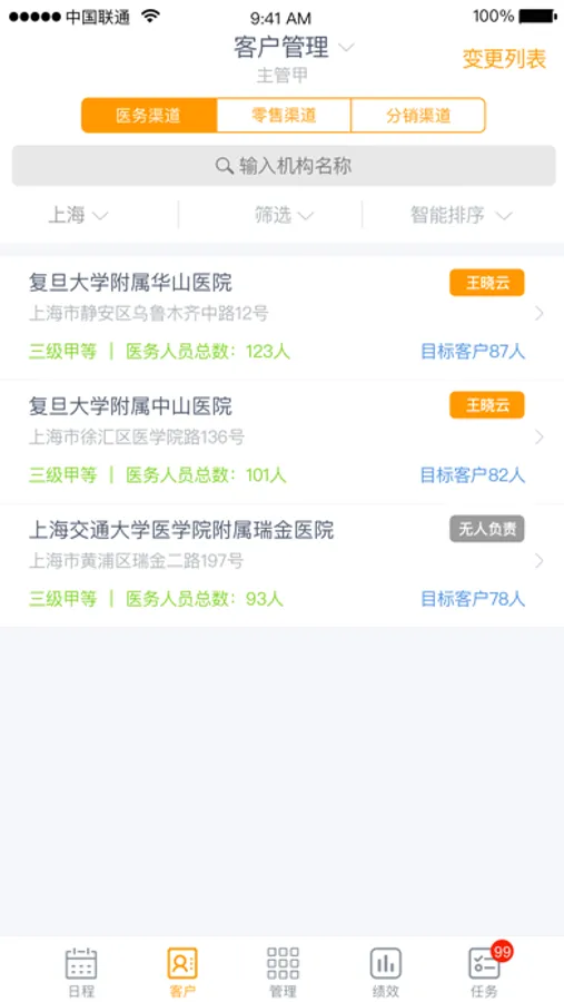 萨斯云CRM是一款针对生命健康领域,集销售效能管理、分销渠道管理、闭环营销管理、CSO团队培养、R²计算为一体的企业管理软件产品。它可以满足医疗药品、零售、生产制造和贸易等多种业务形态的用户需求,并通过大量的行业经验积累为众多客户建设企业信息标准并提供行业内最先进的技术解决方案。