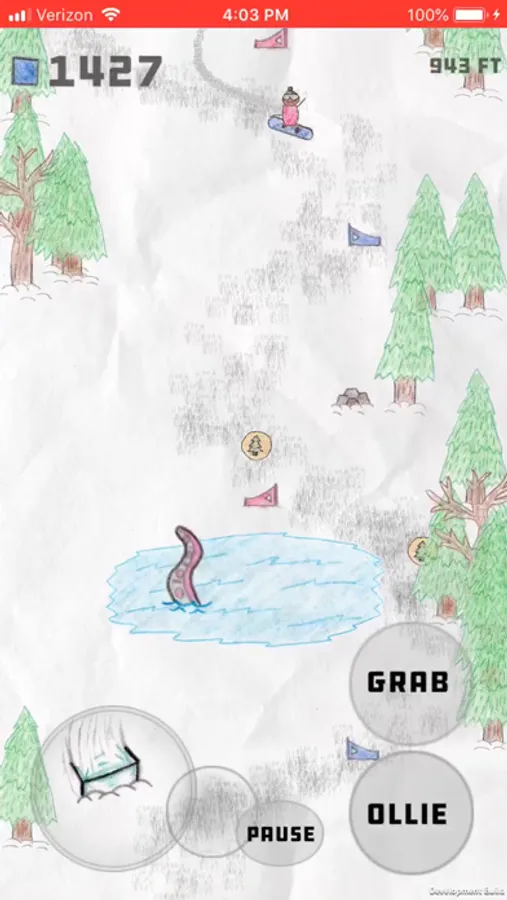 Sketchy Snowboarding is a hand drawn infinite snowboarder where no two runs are the same. Carve, ollie, grab, grind, and spray folklore beasts to progress through 100 unique challenges.