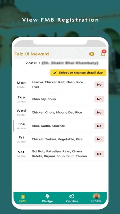 Facilitating FMB thaali registration and coordination, Jamaat contribution and profile.