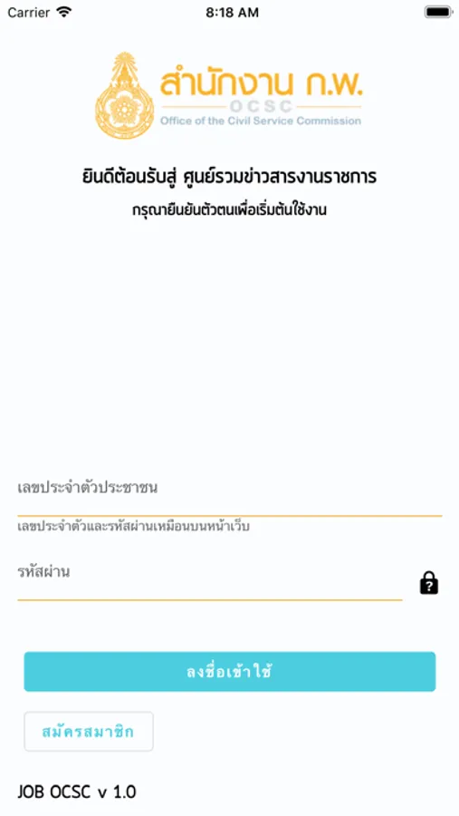 4. สมาชิกเว็บ JOB.OCSC.GO.TH สามารถ Log-In ใน Mobile Application “JOB OCSC” นี้เพื่อใช้งานได้ทันที (ใช้ UserName-Password เดิม)