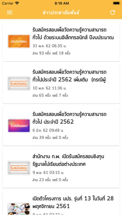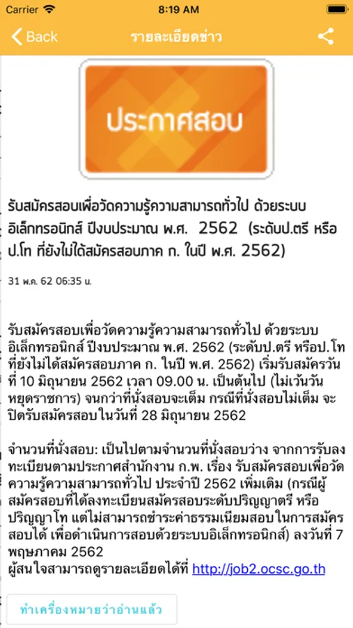 3. รับทราบข่าวสารเกี่ยวกับการสมัครสอบเพื่อวัดความรู้ความสามารถทั่วไปของสำนักงาน ก.พ.