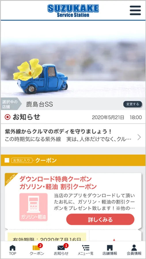当社の公式アプリ「鈴掛カーライフサポート」ではアプリで簡単に洗車・コーティングなどのご予約や愛車のメンテナンス管理が可能の他、当店で利用いただけるお得なクーポンや各種メニューの割引情報を配信しております。