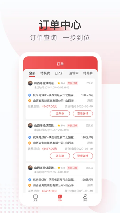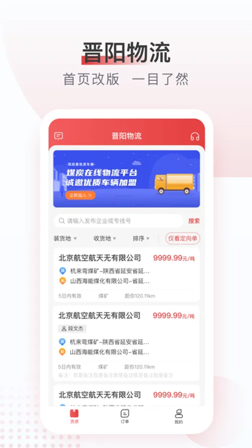找车找货利器!晋能物流司机端让你快速找到真实可靠的货源信息! 货主发货助手!数万计的车主、车队等着你,实名认证让货物运送更高效!