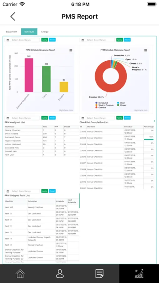 Asset Management | Inventory Management |PPM Schedule | AMC |Energy Management|Reports|Heldesk |Noticeboard|Visitors management |Documents Center