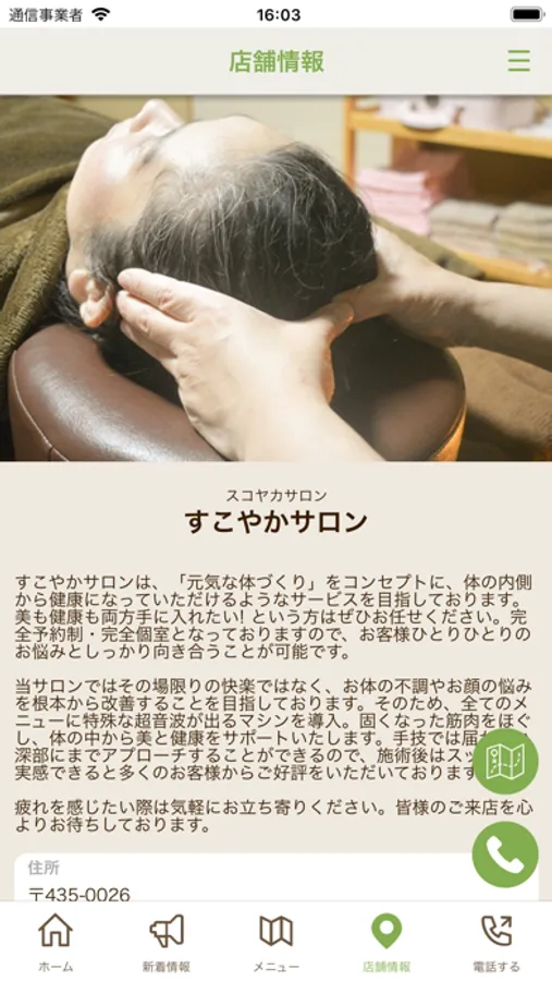 浜松市のすこやかサロンの公式アプリが登場。アプリを通して『すこやかサロン』の新着情報やお得な情報をリアルタイムで受け取ることができます。また、いつでもお手元のスマートフォンから、メニューやご希望のお時間帯のチェック・ご予約などが可能です。アプリをインストールしていただくことにより『すこやかサロン』を、より便利に身近にご利用していただけます。
