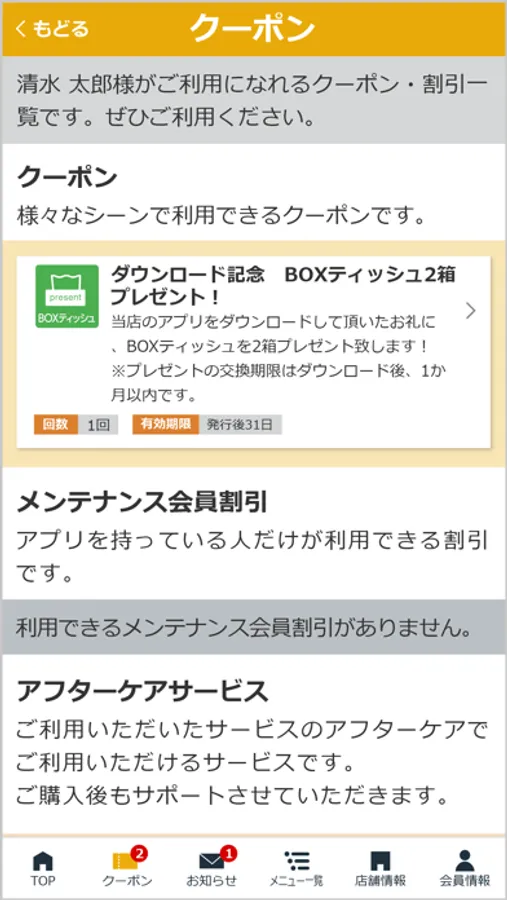 当社の公式アプリ「藤井石油店」ではアプリで簡単に洗車・コーティングなどのご予約や愛車のメンテナンス管理が可能の他、当店で利用いただけるお得なクーポンや各種メニューの割引情報を配信しております。