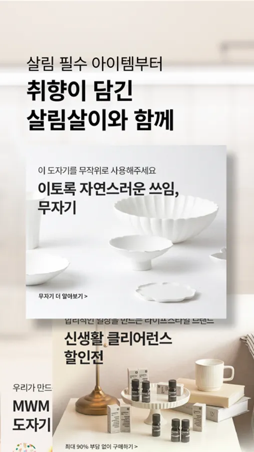 하루를 살아가는 순간순간에 필요한 살림 필수 아이템부터,