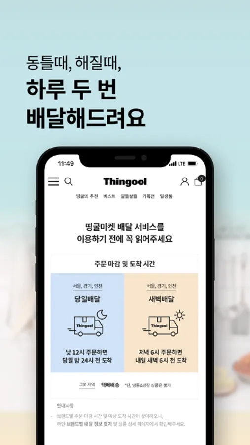 낮 12시 주문하면 당일 밤 24시 전에. 당일배달