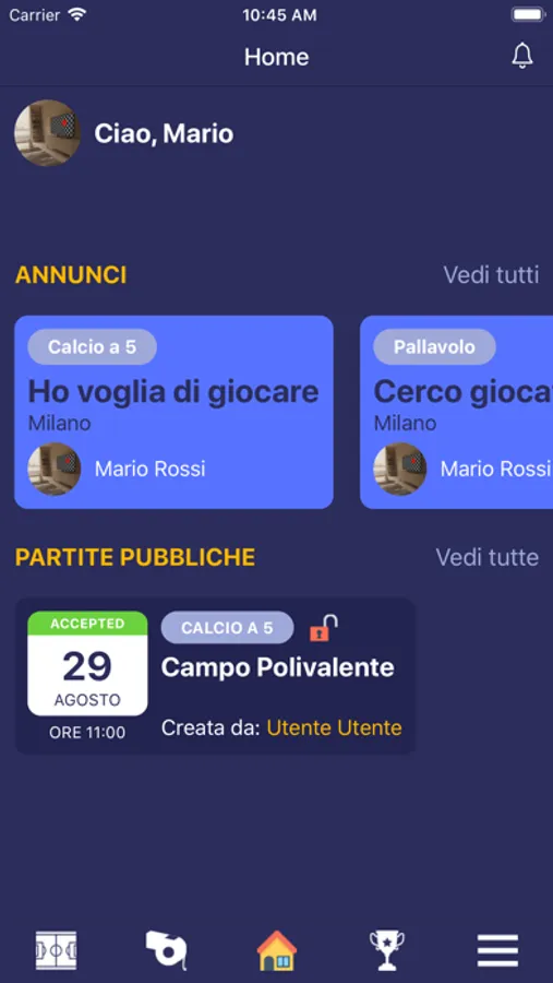 Una volta inviata la prenotazione potrai invitare i tuoi amici a giocare, creare eventi e annunci visibili a tutta la community