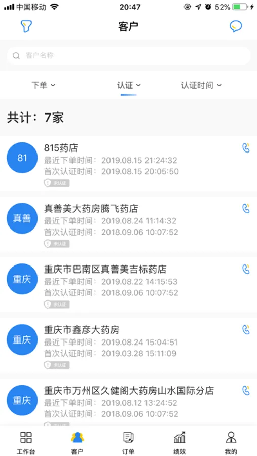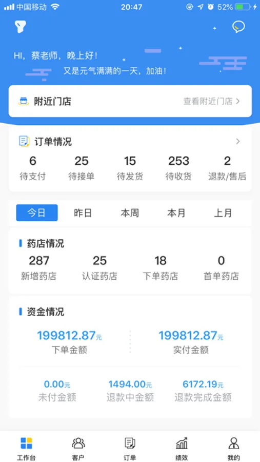 工作台:快速统计客户新增、认证状态、下单情况,便于及时跟进客户,提高工作效率。