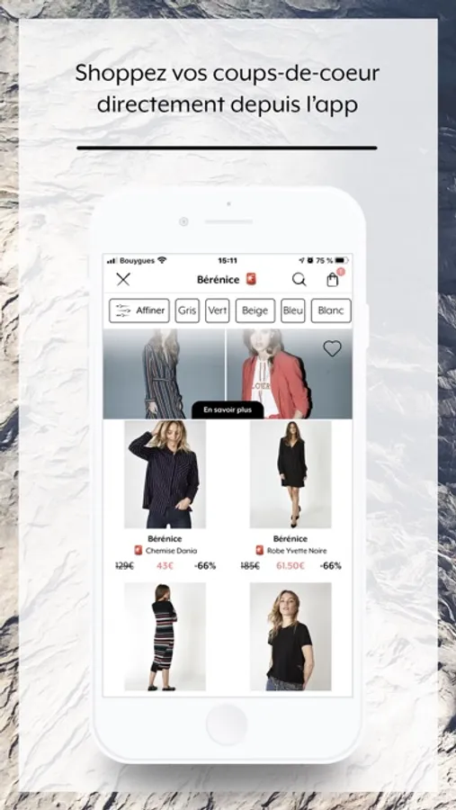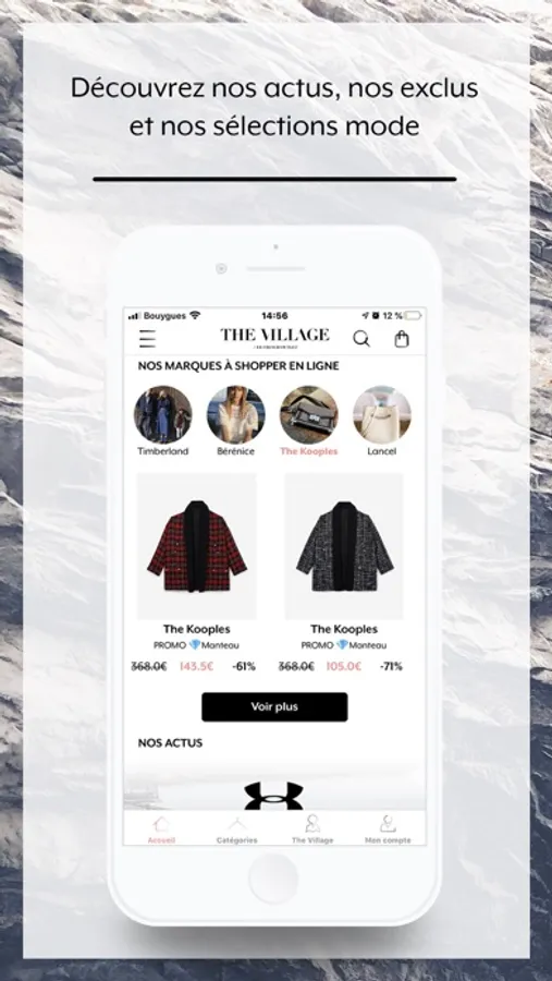 Découvrez plus d’une centaine de marques d’exception (Sandro, Converse, Lancel, The Kooples, Galeries Lafayette, American Vintage, Balibaris...) et retrouvez le meilleur des tendances mode homme, femme et enfant sur notre toute nouvelle application. Où que vous soyez, shoppez en ligne 24/7 vos marques préférées de -30% à -70% toute l’année !