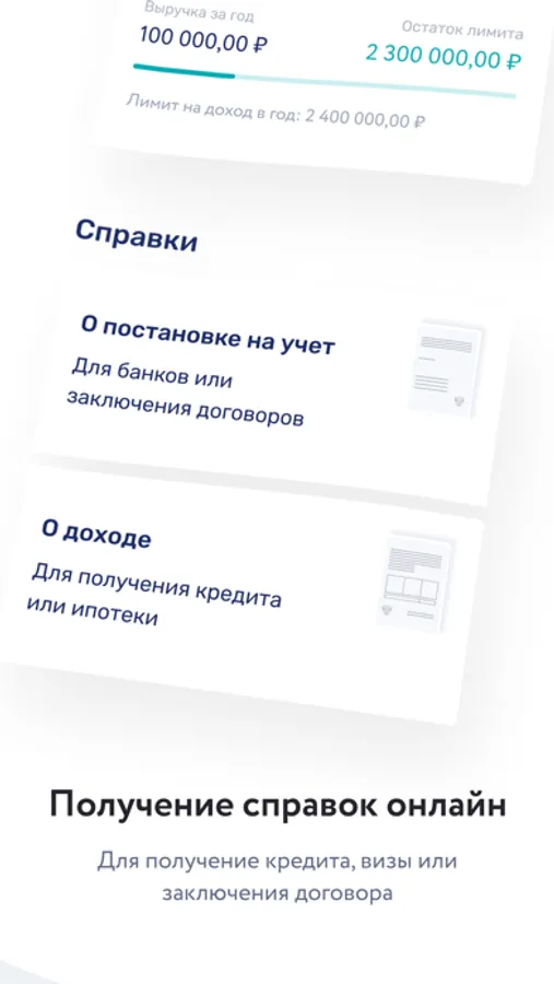 В любой момент получите справки о доходах или постановки на учет для оформления кредита, визы или заключения договоров.