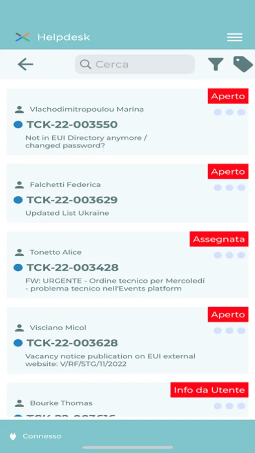 The actual version of the App only allows access to the OPERATORS of the Helpdesk. In the future, USERS will also be able to log in and use the application.