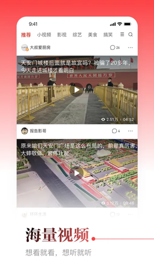 【海量内容】海量内容等你来!集各大新闻资讯平台精品内容于一体,既有权威发布,又有小众兴趣。要闻、热点、体育、娱乐、时尚、财经、科技、军事、汽车、美食、摄影、旅游各大领域任你看!视频、影视、音频、漫画各类内容随心享!新闻推送更快一点,随时掌握最新消息!