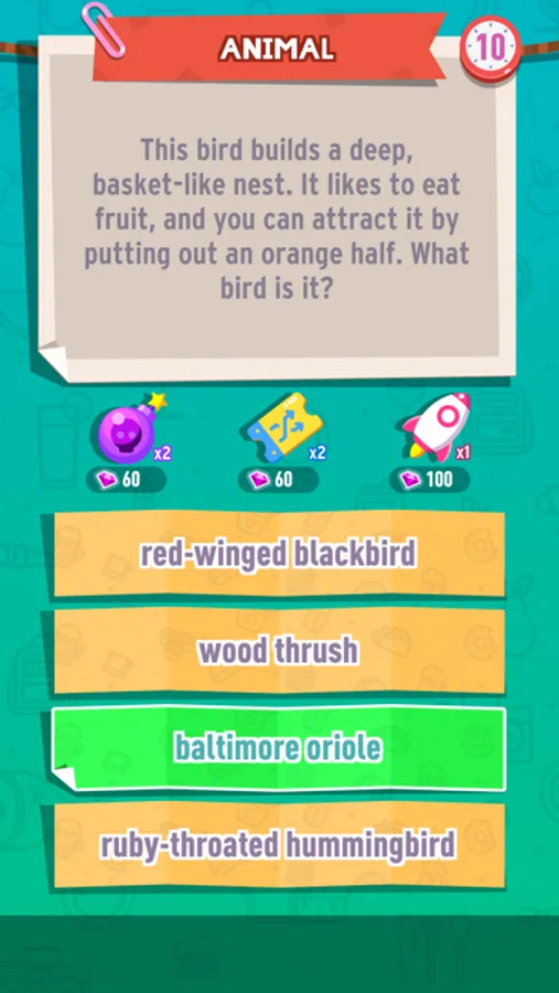 Different categories: General knowledge, Music (Guess the song), Sports, Animal, History, Entertainment, Literature, Science.