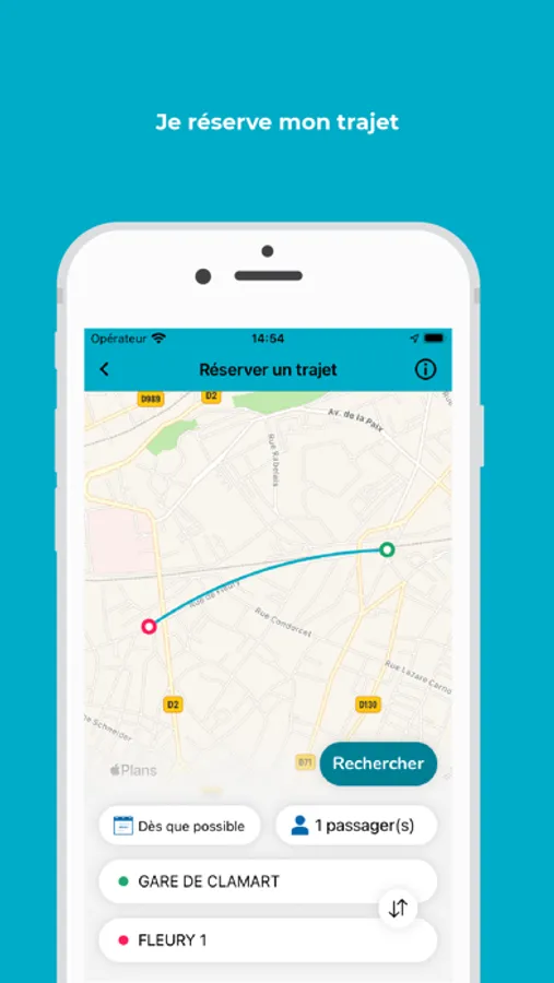 Grace à cette application réservez vos trajets jusqu'à une heure avant votre départ. Vous pouvez aussi programmer plusieurs trajets 1 mois à l'avance et pour plusieurs personnes.