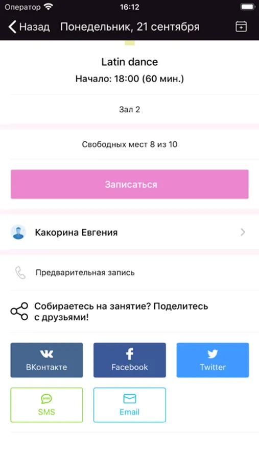 С помощью приложения вы можете записываться на занятия , контролировать свою посещаемость , следить за новостями , расписанием студии , получать актуальную информацию об изменениях в расписании и специальных предложениях .