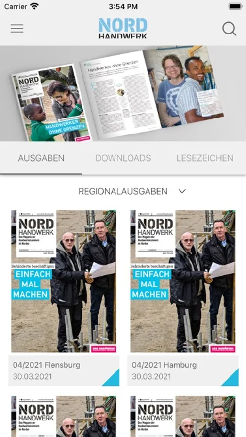 Mit der NordHandwerk-App erhalten Sie das komplette Magazin pünktlich auf Ihr iPad. Sie können es lesen, wann und wo immer Sie wollen. Die App garantiert mit ihrem zeitgemäßen Funktionsumfang ein komfortables Lesevergnügen. Einfach ausprobieren!