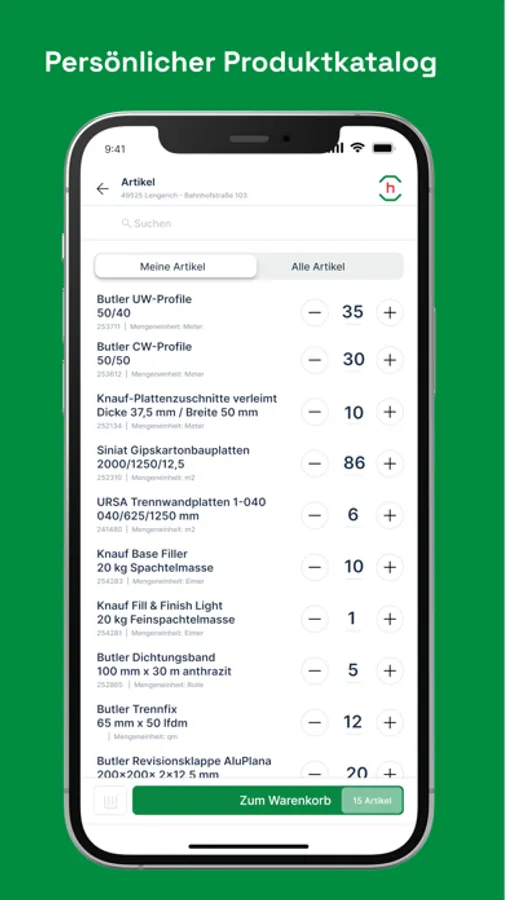 Mit der hagebau Profi-App sparst Du Dir bei jeder Bestellung Zeit - nie wieder lästige Anrufbeantworter oder Warteschleifen nach Dienstschluss. Die App macht Dir das Bestellen und Kommunizieren mit Deinem hagebau Händler einfach. Bestell bei Deinen regionalen hagebau Händlern jederzeit und von überall aus. Du hast alle Bestellungen an einem Ort und ein auf Dich individuell abgestimmter Katalog erlaubt Bestellungen in sekundenschnelle. Behalte den Auftragsstatus ganz einfach im Blick.