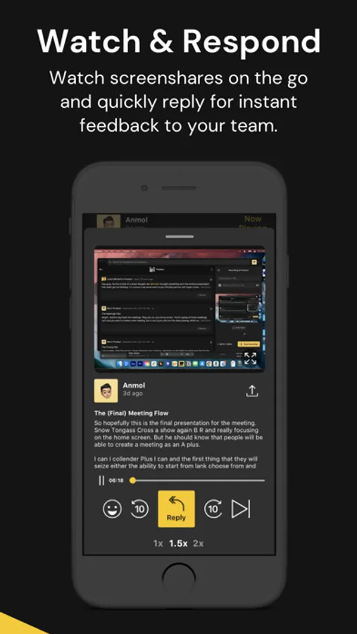 Yac is an audio first, async meeting platform for teams. On Yac, short-form voice messages from your teammates let you stay in sync without being derailed by video calls and noisy chats. No scheduling or timezone management needed.