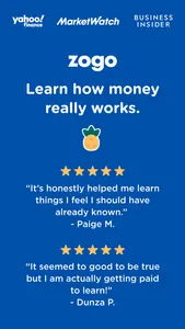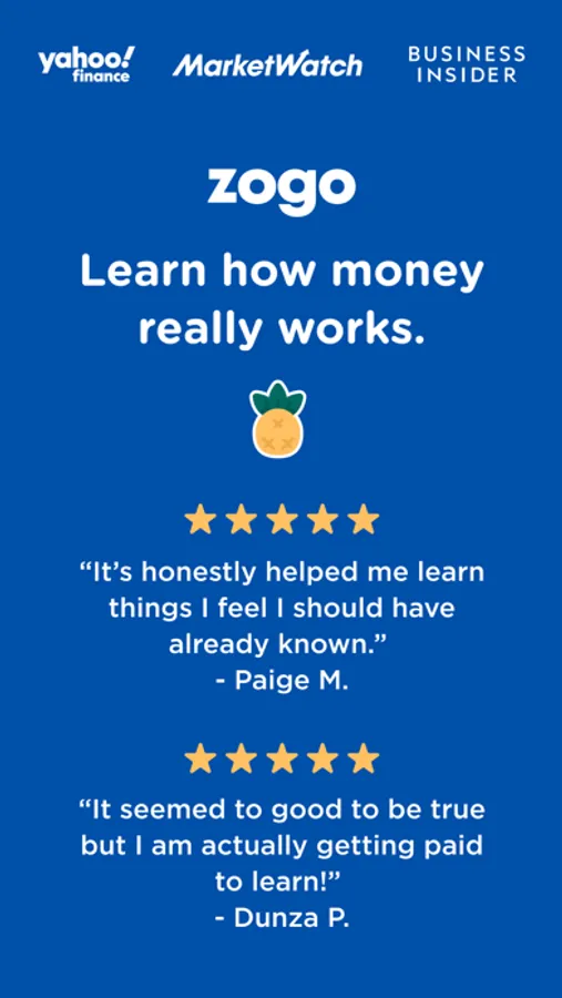 Zogo is the #1 app that helps you improve your financial literacy and how money really works in real life. We break down complicated financial topics into fun bite-sized modules.