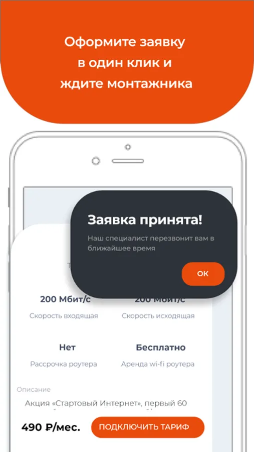 Просто выберите тариф и оставьте заявку на подключение. В течение нескольких минут мы свяжемся с вами и назначим удобное время для подключения интернета.