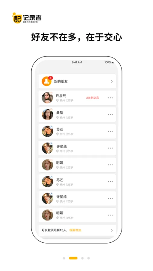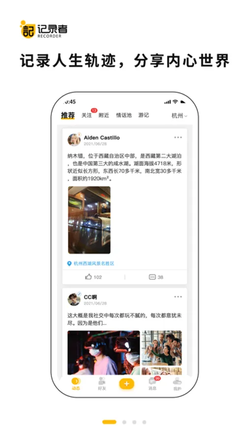 记录者是一款个人自传APP,随时记录人生轨迹,书写快意人生。可交友、聊天、分享内心感悟、旅游心得、爱情路程、孩子成长时刻。记录者,是记录个人成长轨迹的平台,记录每一个美好的时刻,记录每一个不平凡的自己。