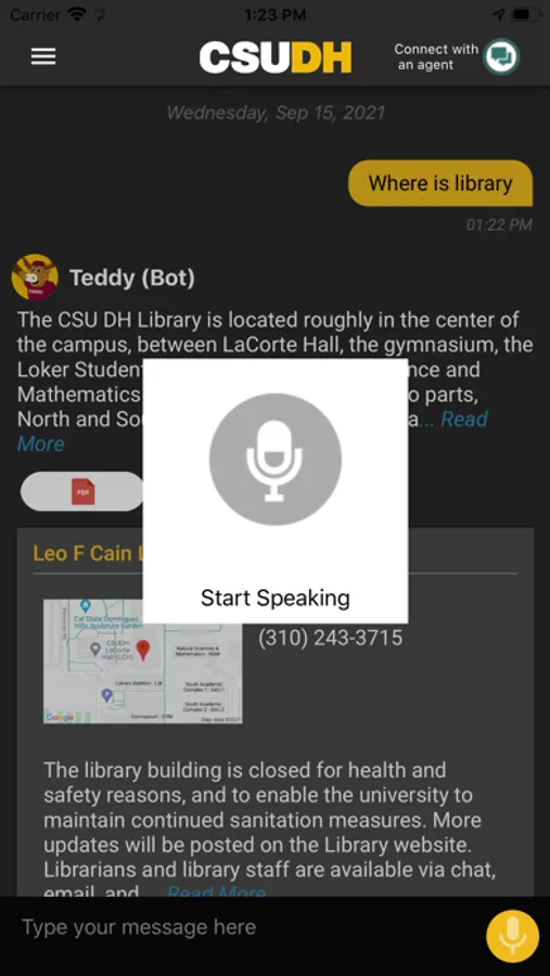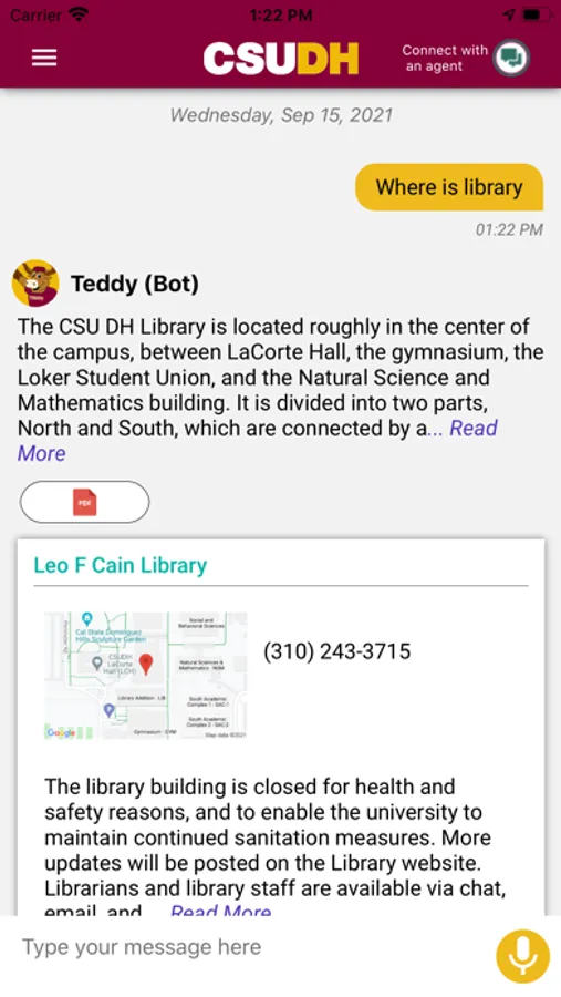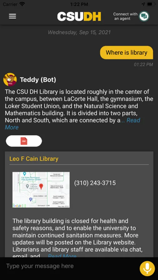 AskTeddy is a CSUDH Artificial Intelligence Chatbot that will provide spoken and/or written information on CSUDH University common questions on a 24/7 basis.