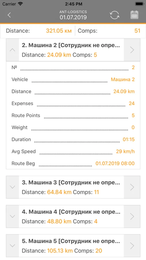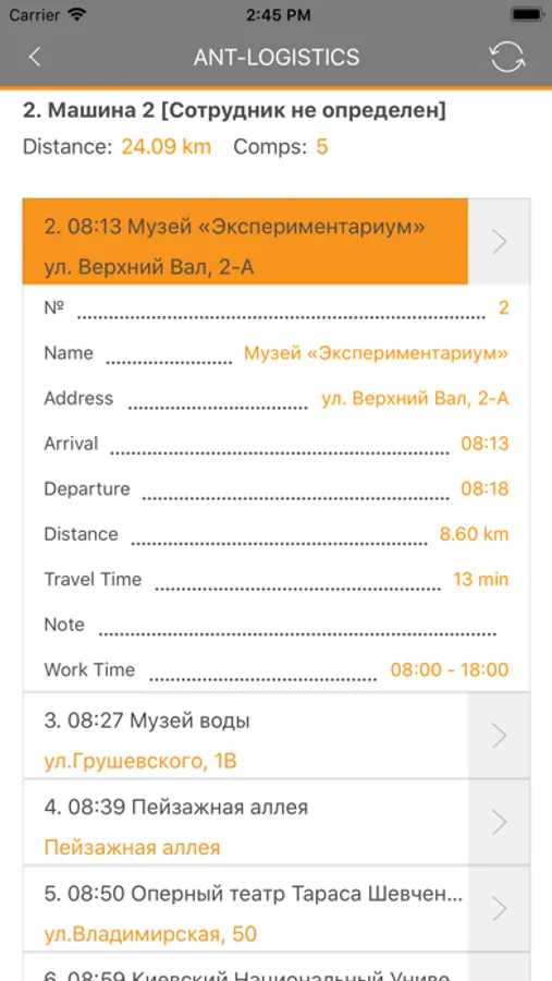 The mobile application gives the driver the opportunity to always see the route formed by the logistician. Switching to navigation mode, the driver can follow this route. During the day, routes can be changed or new ones added - the driver will receive relevant notifications, all changes will be promptly displayed in his device.