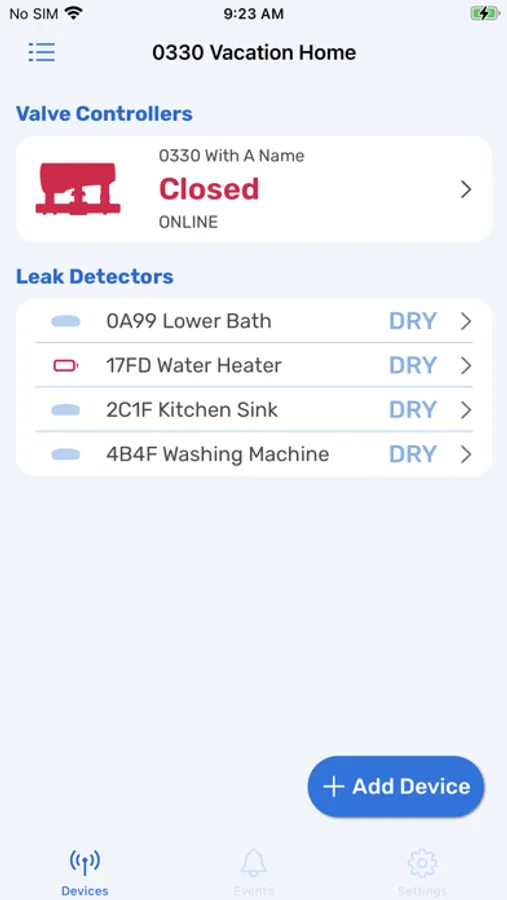 The moment water is detected by any of your devices, the Valve Controller will shut off your water main and you are notified immediately!