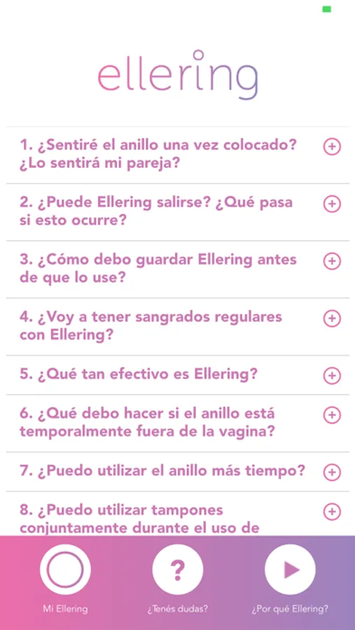 Ellering, es la aplicación del producto de Laboratorios ELEA PHOENIX, que te ayudará a organizar el uso de tu anillo vaginal anticonceptivo de una manera clara y simple.
