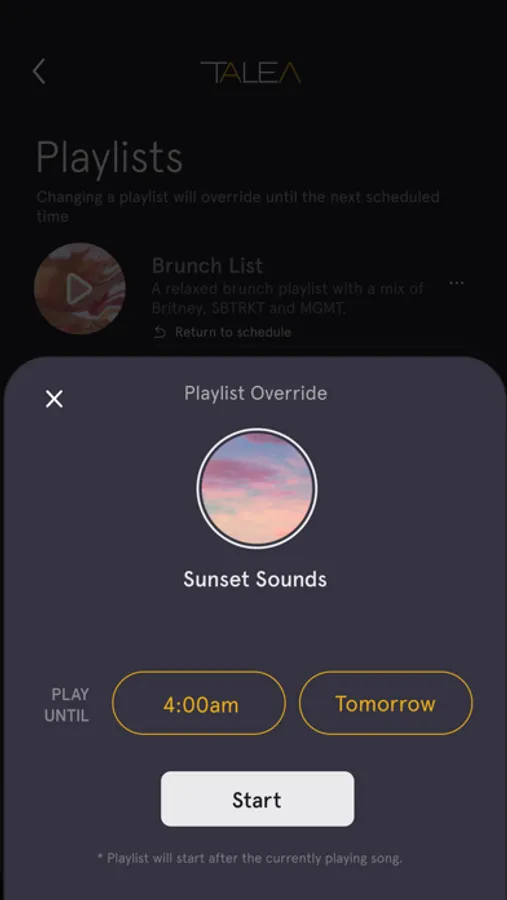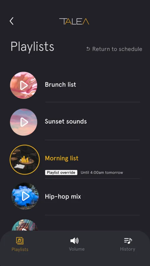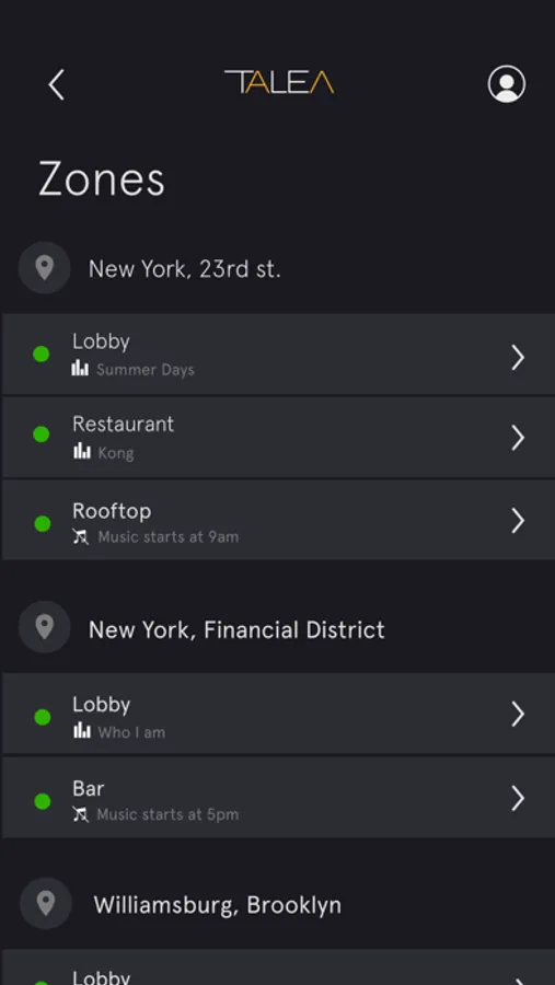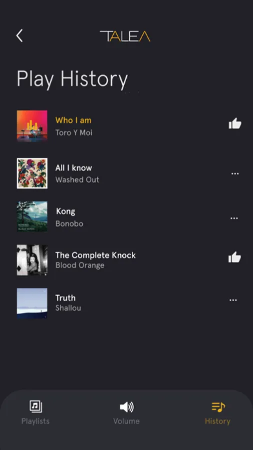 The Talea remote application allows Talea music for business customers who use the Talea music system the ability to see what is currently playing at their location, the status of their devices, override the current playlist and up or downvote songs to provide feedback and influence the playlist.