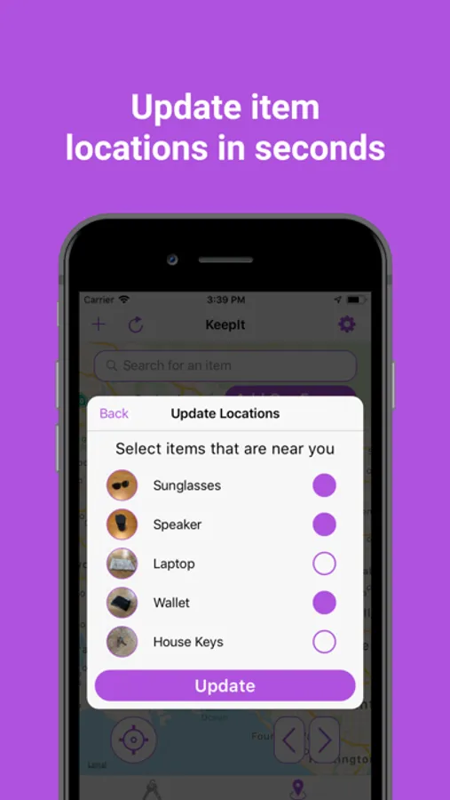 KeepIt features the option to have daily reminders sent to your home screen so items are always updated in their most recent location. Use the "GeoFences" feature to send updates when entering and/or leaving frequented locations such as your home, workplace, school, etc.