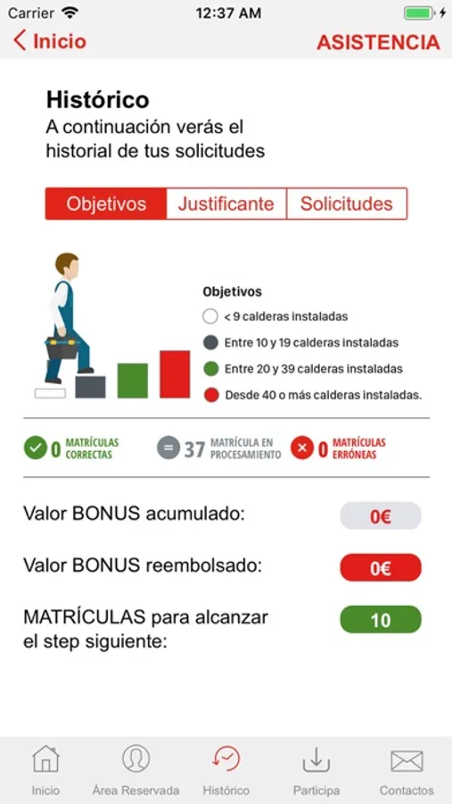 Puedes consultar tu progreso, el historial de solicitudes y las informaciones esenciales de cada una en cualquier momento. Puedes descargar y consultar fácilmente los justificantes o solicitar asistencia, todo a través de la Aplicación.