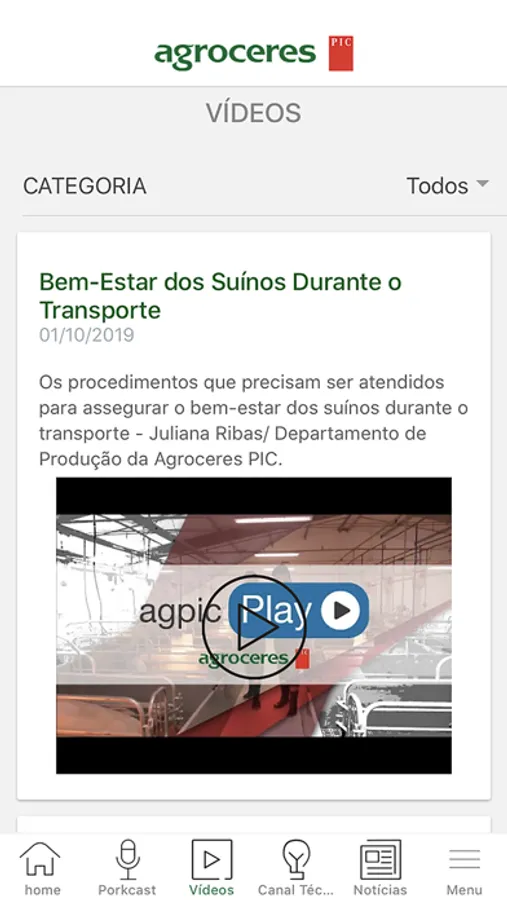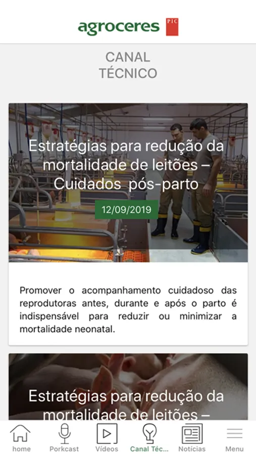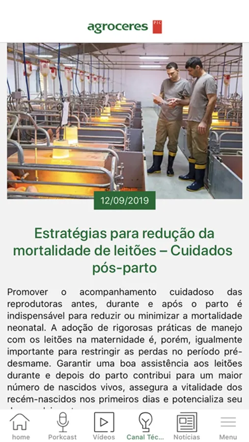O aplicativo da Agroceres PIC reúne conteúdo técnico e educativo. São videoaulas, entrevistas,