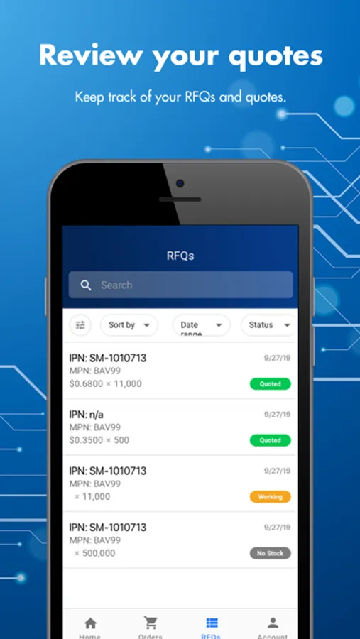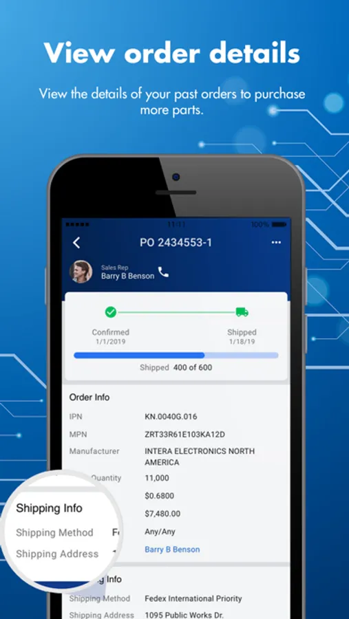 - Access order status details to see exactly what’s going on with your orders and where your parts are